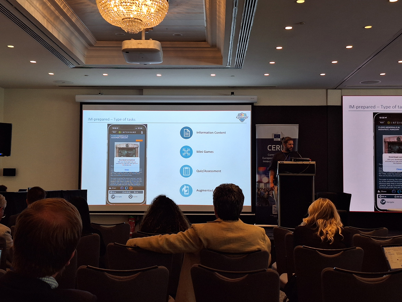 B-prepared’s demonstration took place right on the first day of this event. Zoltán Székely (SFC) delivered a stunning live presentation, detailing all four products of B-prepared and their background and interrelations for deeper understanding. After this session, enhanced by videos showing how each product works, a live demonstration took place where participants could try out VR-prepared, IM-prepared and Disastropedia, too. Thus, the B-prepared team could gather some feedback and also a bit of well-deserved appreciation.